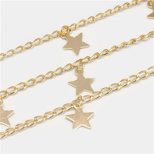 Cadena con dijes de estrellas chapada en oro 18k. Crea hermosos collares y pulseras con esta cadena de alta calidad. Añade un toque de elegancia y brillo a tus accesorios con Cadena CD35.