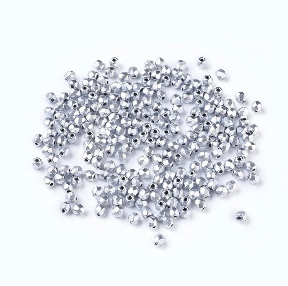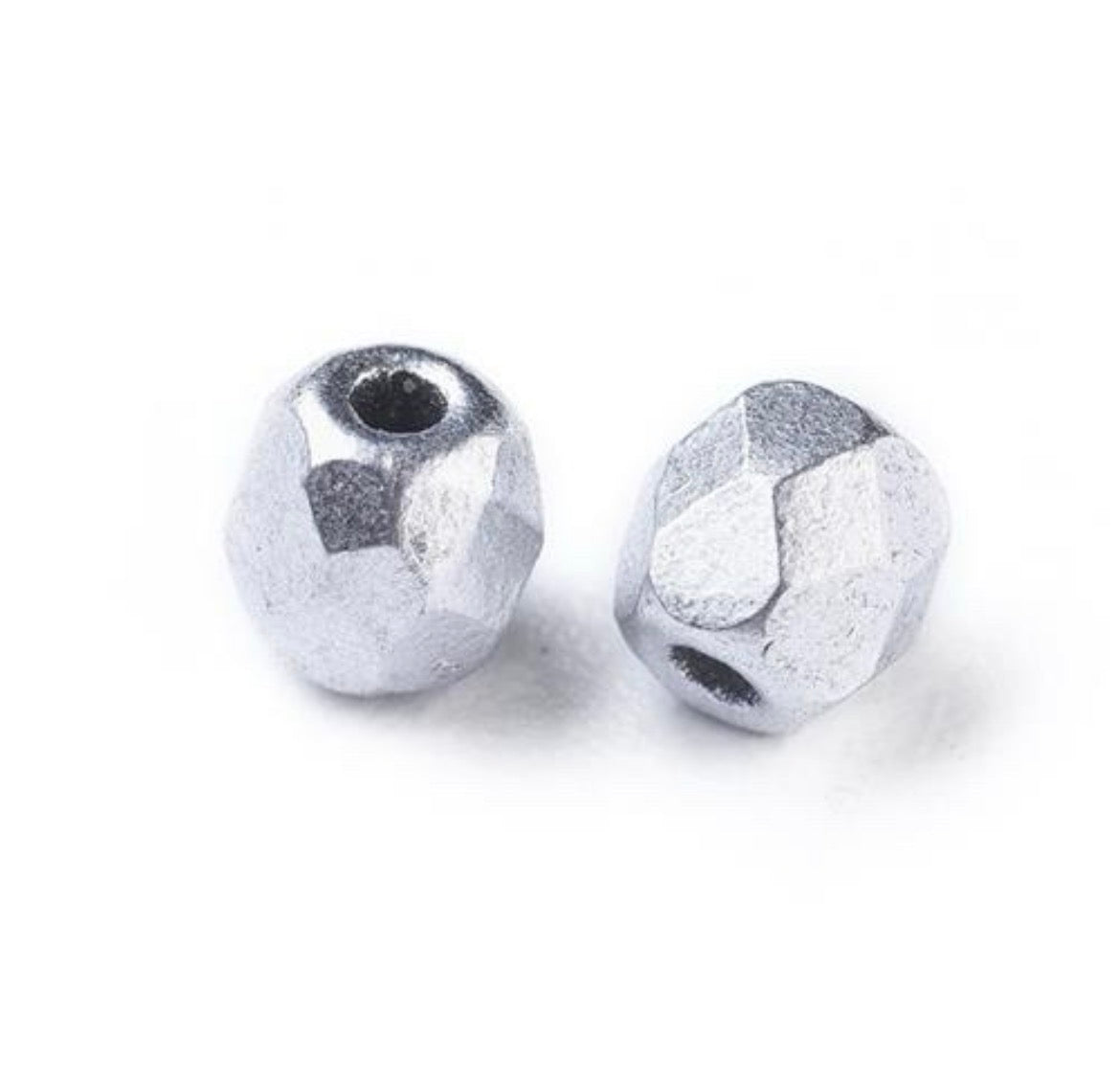 Perlas de vidrio checas pulidas al fuego. Color plateado.