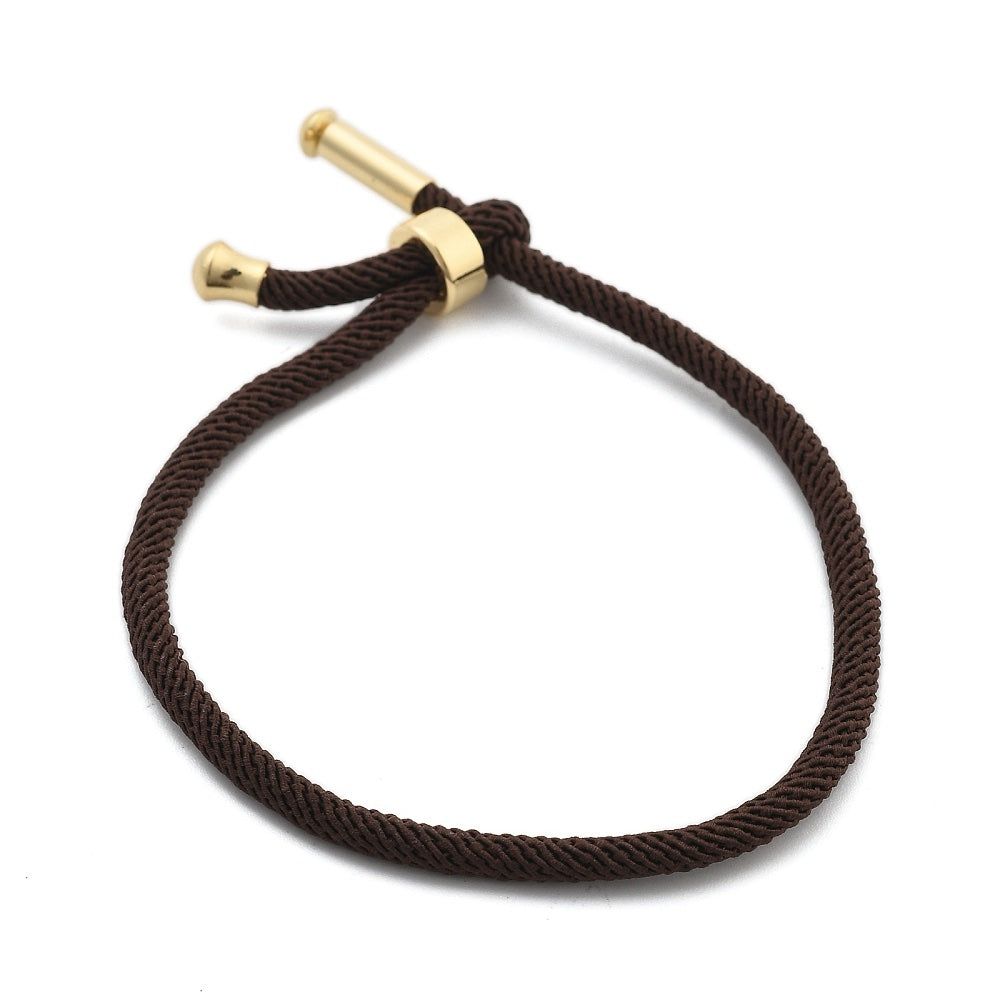 Esta pulsera de cordón está confeccionada en algodón resistente y cuenta con un broche chapado en oro de 18 quilates, que aporta un acabado elegante y duradero. Además, su diseño permite la incorporación de dijes personalizados, ofreciendo versatilidad para adaptar el accesorio a tu estilo personal con un toque exclusivo y sofisticado. Ideal para quienes buscan combinar comodidad y distinción en una pieza única.