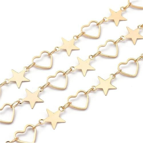 Esta cadena CD10 es el accesorio perfecto para cualquier ocasión. Con sus estrellas y corazones, le da un toque de encanto y elegancia a cualquier atuendo. Además, está chapada en oro 18k, lo que garantiza su durabilidad y calidad. Luce un estilo único y sofisticado con esta cadena.