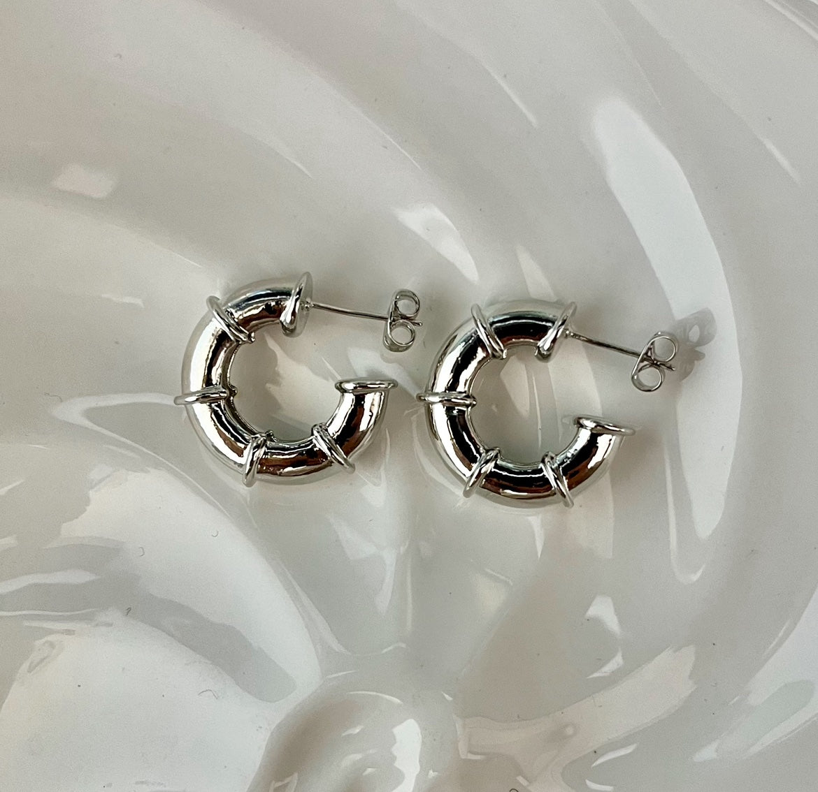 Estos aros AR62B son una opción elegante y versátil para cualquier ocasión. Hechos con un diseño de medio círculo y chapados en platino para mayor durabilidad y brillo. Añada un toque de estilo a su atuendo con estos aros de textura sutil.