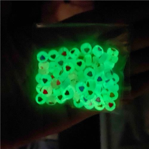 Glow in the dark 10g. (83 uni. aprox.)\n\nTamaño: 7x3.5~4mm, agujero: 1.2mm\n\nPrecio por 10 g. 83 unidades aprox.