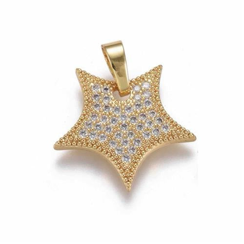 Este colgante es una elegante estrella de micro circonias, diseñado para añadir brillo y sofisticación a cualquier atuendo. Con su chapado en oro 18k, este colgante es duradero y resistente al deslustre, asegurando un estilo impactante por años venideros. Una elección imprescindible para cualquier amante de la moda.