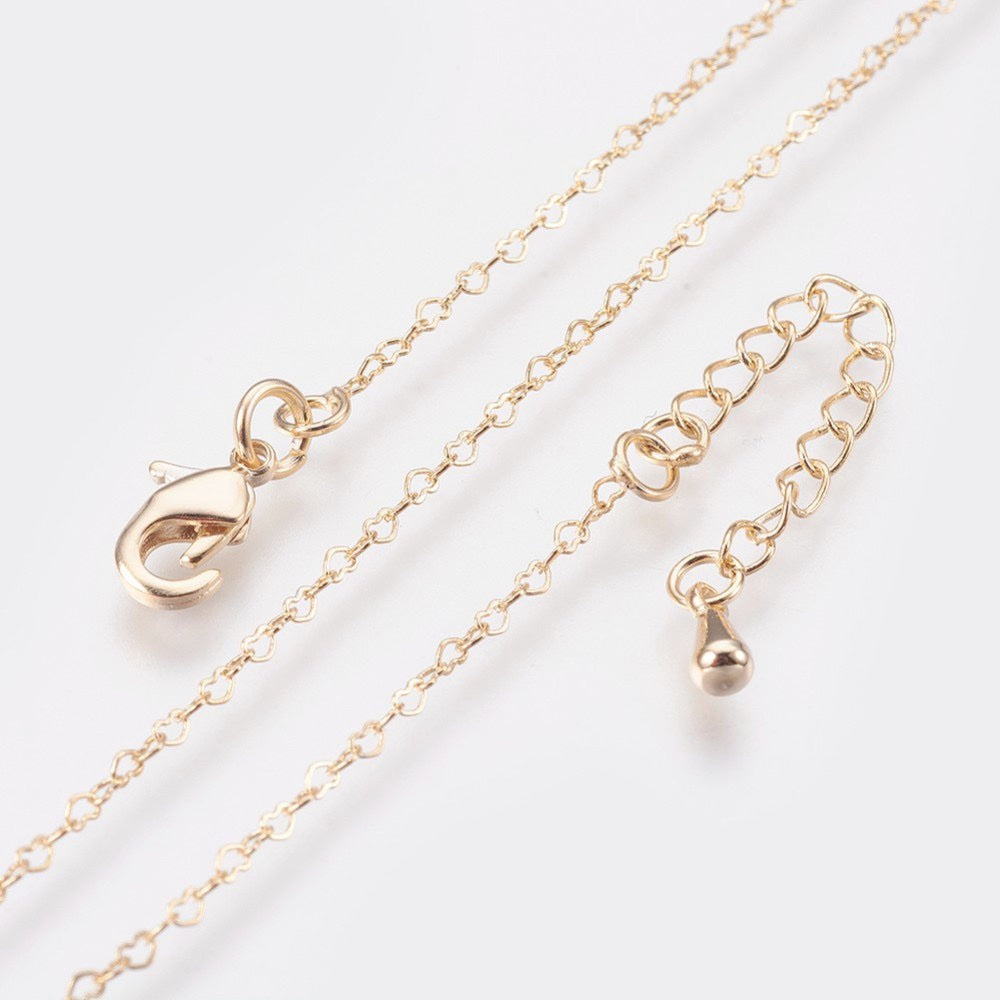 Nuestra cadena CD55 (x Unidad) es elegante y resistente gracias a su chapado en oro 18k. Con un broche langosta y una extensión, esta cadena cuenta con eslabones de mini corazones que añaden un toque de delicadeza a cualquier look. ¡Luce radiante con esta cadena de alta calidad!