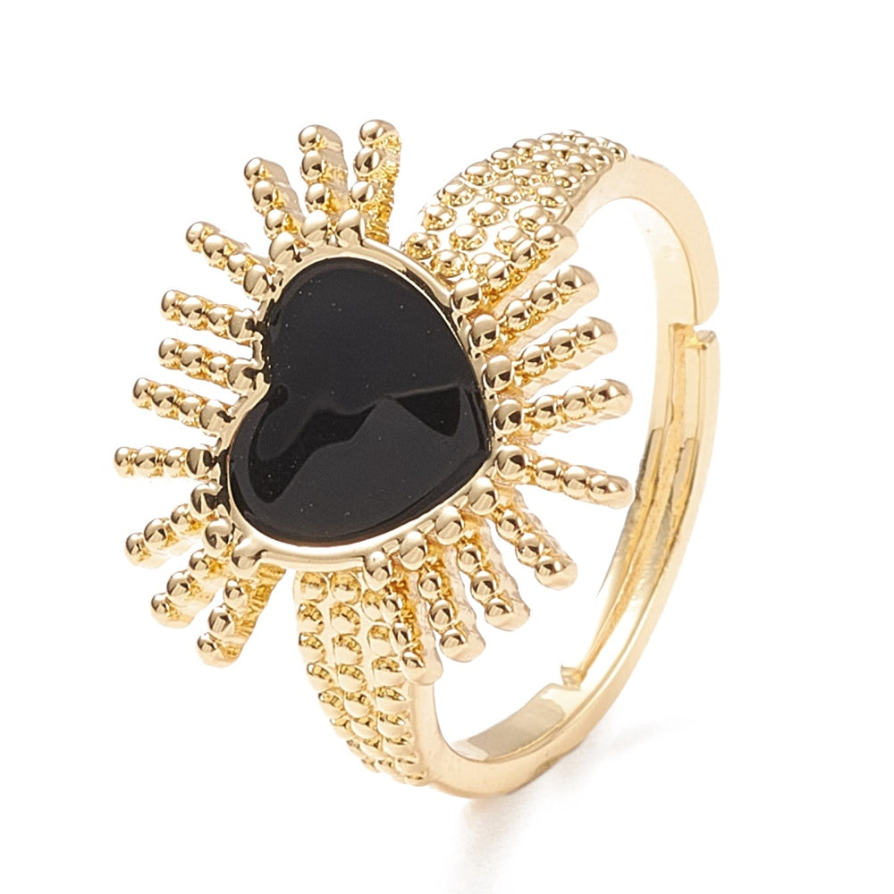 Este anillo AN10 es perfecto para cualquier ocasión. Su diseño de corazón esmaltado en negro lo hace elegante y su ajuste permite usarlo en cualquier dedo. Además, su chapado en oro 18k lo hace resistente y duradero. Un accesorio sofisticado y versátil a la vez. ¡No te quedes sin el tuyo!Ajustable, chapado en oro 18k
