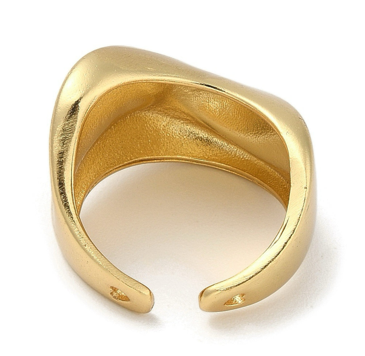 ElEste anillo AN55 presenta un diseño único con ondas irregulares que le dan un efecto lijado y brillo especial. Perfecto para añadir un toque distintivo a cualquier atuendo. Hecho con materiales de calidad, chapado en oro 18k para garantizar durabilidad y estilo duradero. ¡Destaca entre la multitud con este elegante y moderno anillo!