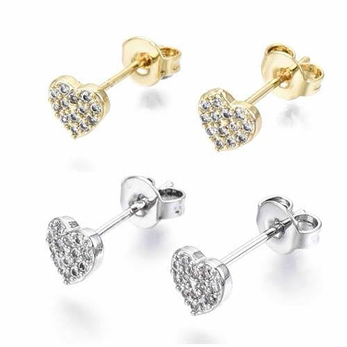 Descubre la elegancia de los mini aros AR12 con corazón y micro circonias. Con chapado en oro y platino, estos aros resaltan tu estilo y te hacen brillar con su toque de lujo. Resalta tu belleza con la calidad y el detalle de estos aros.