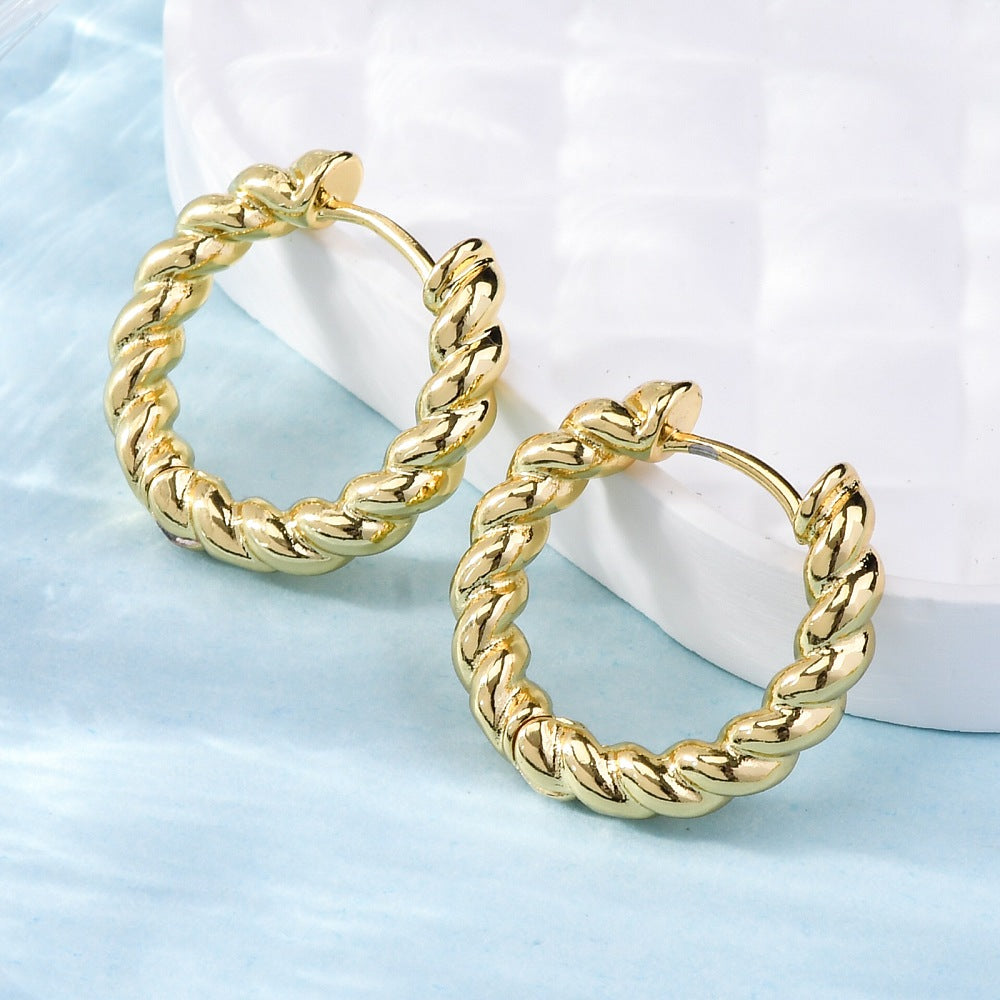 Los aros AR14A son una opción elegante y sofisticada para completar cualquier atuendo. Hechos con material chapado en oro 18k y un diseño de argolla trenzada, estos aros son duraderos y resistentes al paso del tiempo. Añade un toque de clase a tu look con estos hermosos aros.