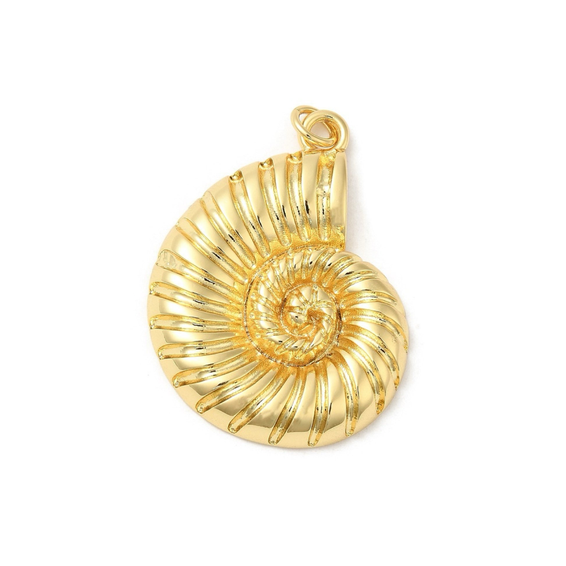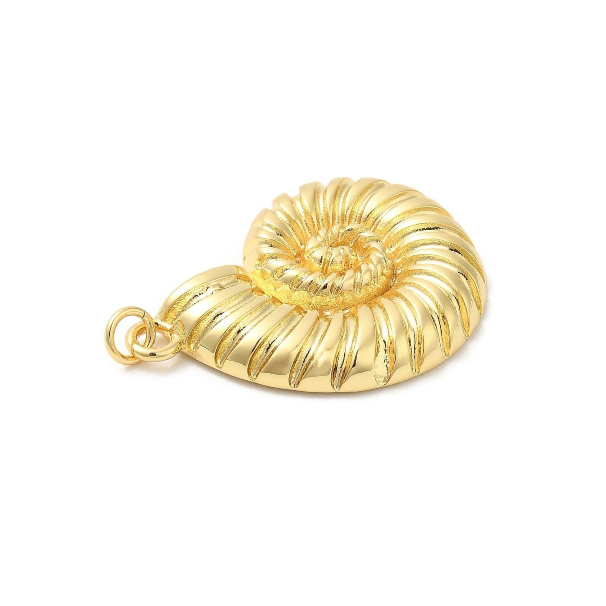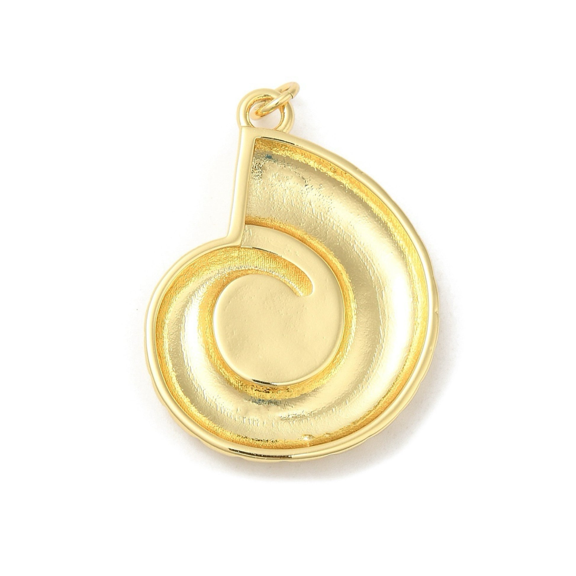 Este colgante C21 con forma de caracol es perfecto para el verano, evocando el mar con su diseño y el chapado en oro 18k lo hace ideal para cualquier ocasión. Agrega un toque elegante a tu atuendo con este accesorio especial. ¡Haz una declaración de estilo con este colgante único!