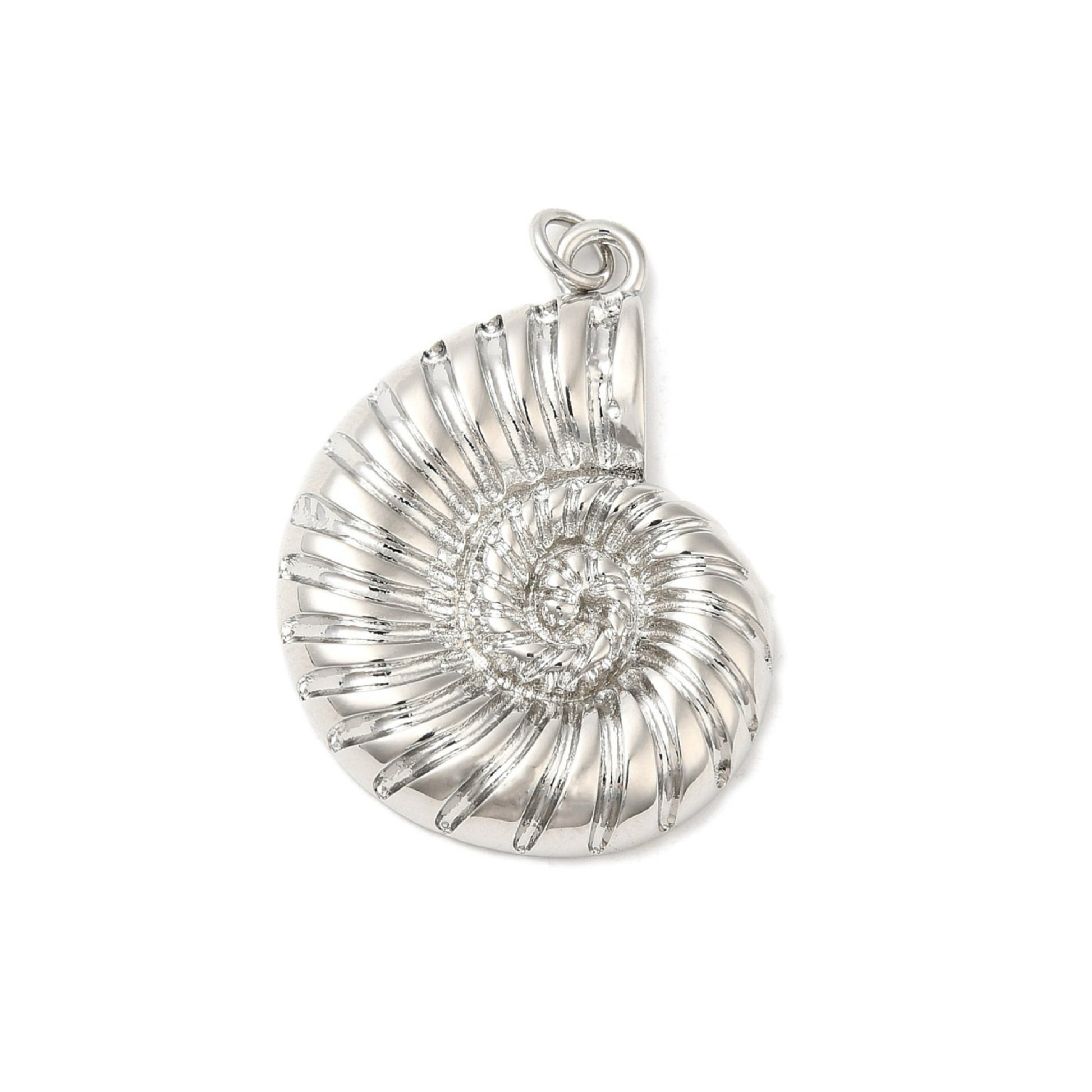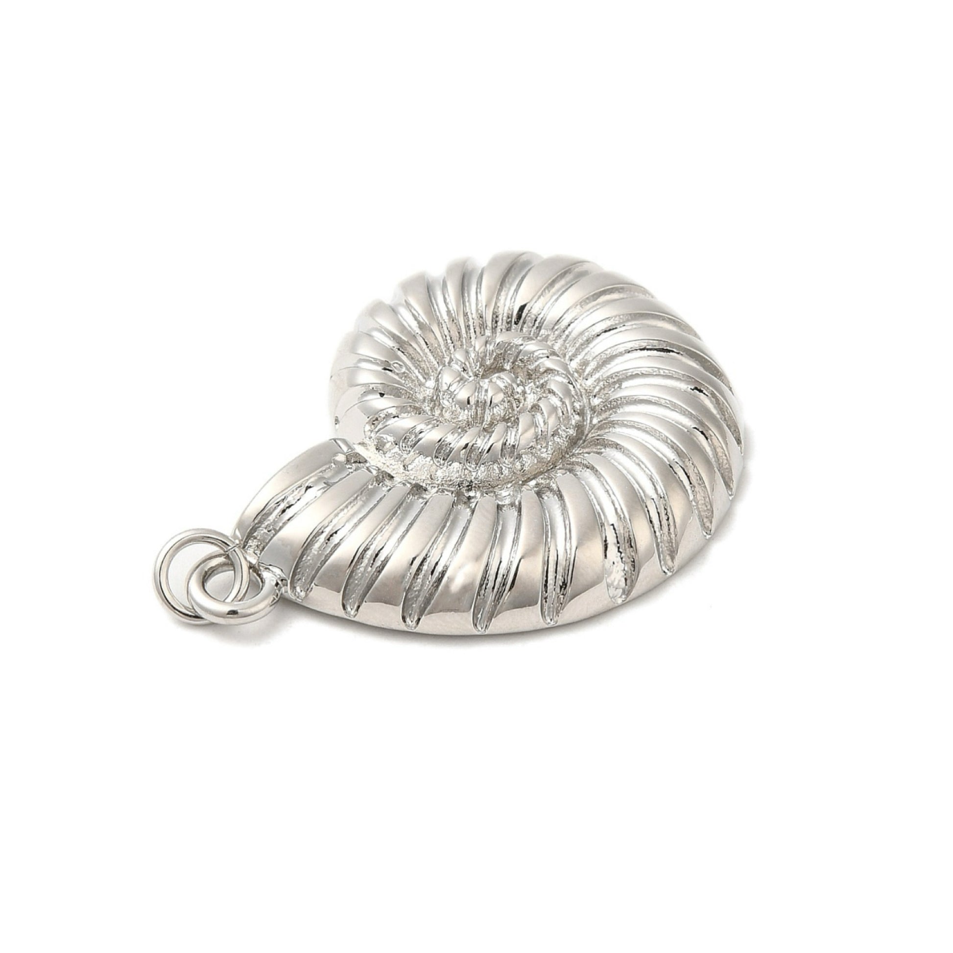 Este colgante C21 con forma de caracol es perfecto para el verano, evocando el mar con su diseño y el chapado en platino lo hace ideal para cualquier ocasión. Agrega un toque elegante a tu atuendo con este accesorio especial. ¡Haz una declaración de estilo con este colgante único!
